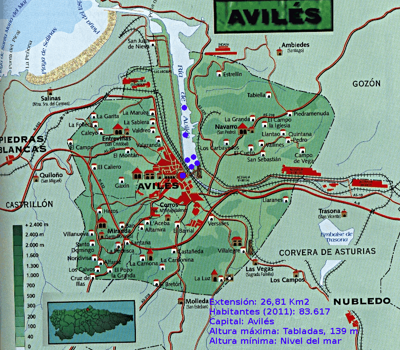 Pequeña pero densamente poblada, Avilés es la tercera ciudad en población de Asturias. Ciudad industrial por excelencia con la acería de la desaparecida ENSIDESA, poco a poco está sufriendo una lenta pero progresiva transformación a ciudad de servicios.