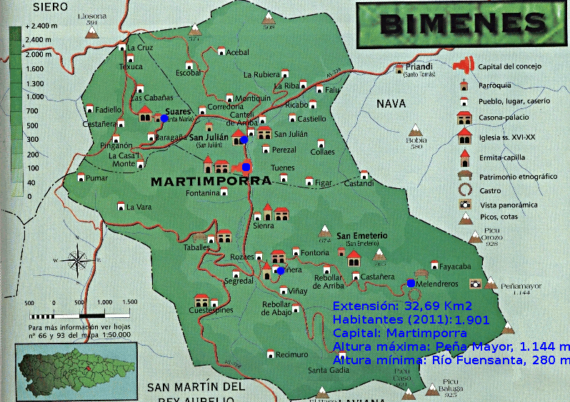 Bimenes es un concejo muy accidentado y por tanto codiciado por los amantes de la media montaña. Según un relato (sin fundamento histórico), se celebró un combate entre Martín Porra y Suero de Vimenes, a causa de la hermana de aquél. Suero resultó vencedor, pero entabló una gran amistad con su rival y de ahí surgió el nombre de la capital.