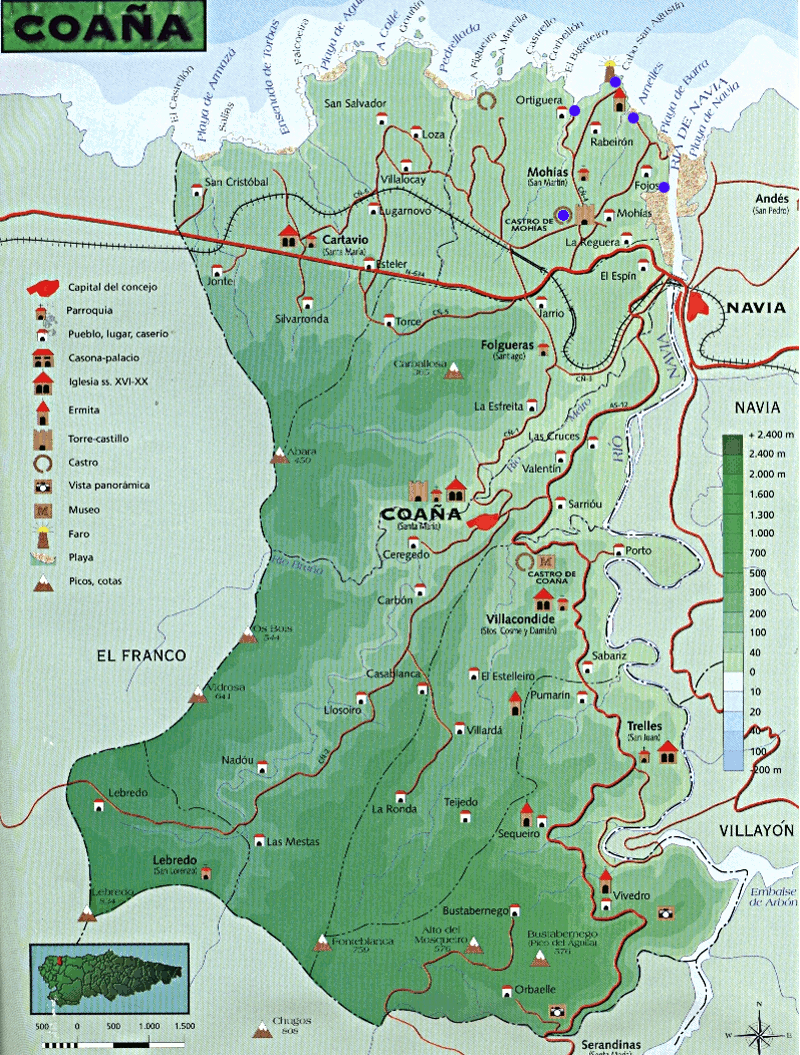 Aunque tal vez sea conocido por sus famosos castros (como el de Coaña y el de Mohías, ambos considerados de origen romano) este concejo tiene un litoral plagado de pequeñas playas muy bien cuidadas y preciosos rincones durante todo el curso del Río Navia, frontera natural con los vecinos concejos de Navia y Villayón.